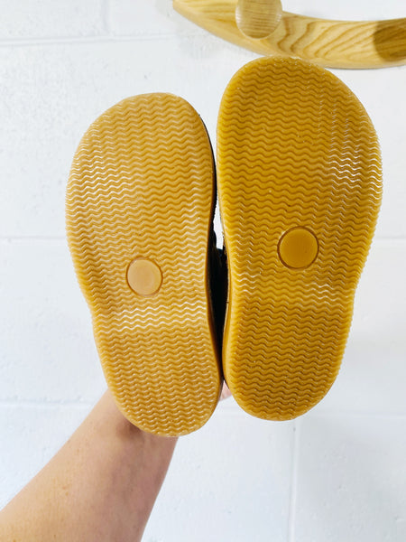 New with tags (and box), suede and leather inner/outer, rubber sole, approximately 6.25 inches from toe to heel